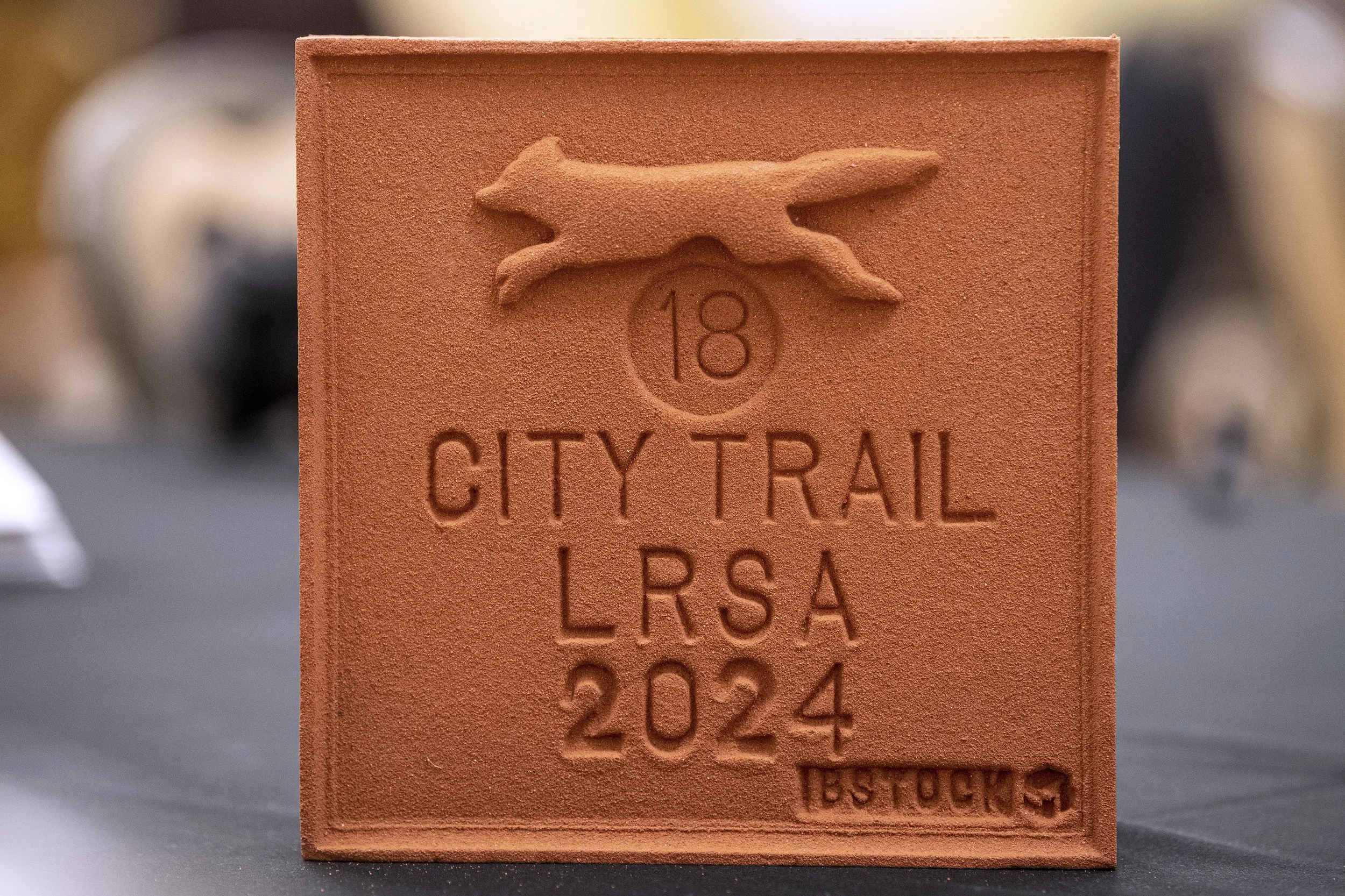 The "City Trail LRSA" highlights a 2024 re-instatement of a historic walk through Leicester's city centre, featuring 37 terracotta plaques. The plaques mark key vantage points, offering panoramic views and a reflection on the city’s changes over 40 years.